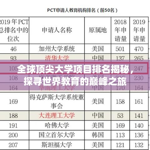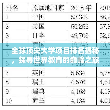 随着全球化的步伐加快,教育领域的竞争也日益激烈,世界顶尖大学项目排名成为了众多学子关注的焦点,它不仅反映了全球教育的现状,更是未来教育发展的风向标,本文将为您深度解析世界顶尖大学项目排名的背后故事,带您领略全球教育的卓越之巅。