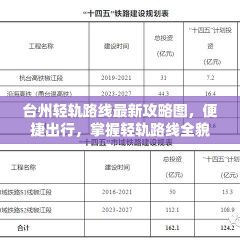 掌握台州轻轨路线攻略图最新,轻松出行无忧,通过本文的介绍,希望能帮助您更好地了解台州轻轨交通系统,为您的出行提供便利,随着台州市公共交通系统的不断完善,轻轨交通将为市民带来更多便捷、高效的出行选择。