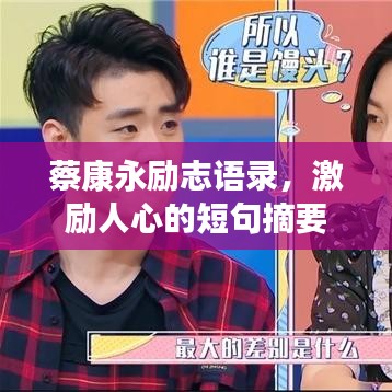 蔡康永,一个才华横溢的作家、主持人、导演和演员,以其独特的智慧和敏锐的观察力深受大众喜爱,他的励志语录,简短而深刻,给人以启示和力量,以下是一些精选的蔡康永励志句子短句,希望能带给您正能量和心灵的触动。