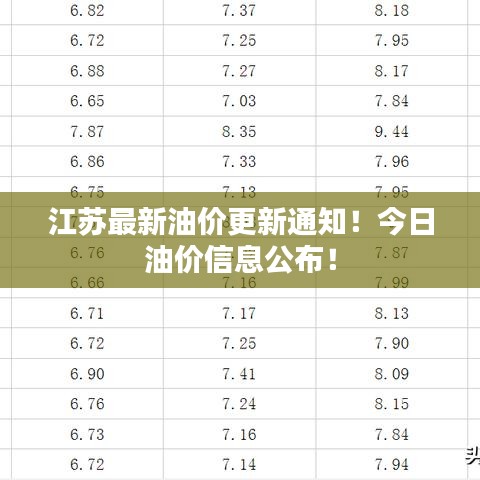 随着国际原油市场的波动,江苏省的油价也相应调整,江苏今日最新油价是多少呢?本文将为您详细解析江苏油价调整的背景、原因以及具体价格。