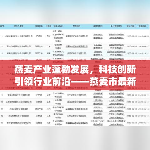 燕麦市传来一系列令人振奋的消息,燕麦产业正在迎来蓬勃发展的新时期,随着科技的不断进步和创新,燕麦市已经成为国内外关注的焦点,引领燕麦行业走向新的高峰。