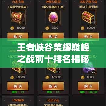 荣耀之巅:王者峡谷前十名排名概述