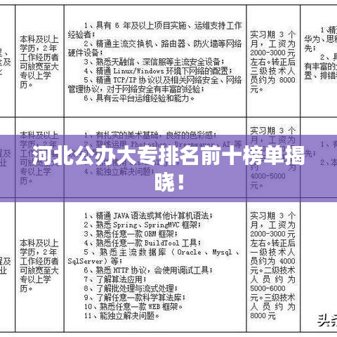河北省作为教育大省,拥有众多高等教育机构,其中包括一些优秀的公办大专院校,以下是河北省公办大专排名前十名,这些学校以其优质的教学和科研水平,为社会培养了大量高素质人才。